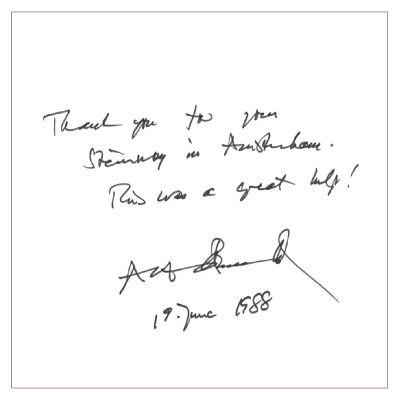Depuis 1979, Pianomobil est l’un des principaux fournisseurs de services de location de pianos et d’organisation de concerts. Des pianistes de renom et des festivals prestigieux à travers l’Europe font confiance à la qualité inégalée de ces instruments et au soutien technique dédié qu’ils fournissent. En 2018, Torben Garlin a pris la direction de l’entreprise, succédant à Denijs de Winter, et a depuis impressionné avec son équipe, démontrant le plus haut niveau d’expertise technique et artistique.